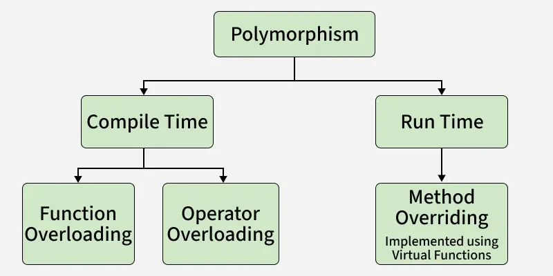 Polymorphism in C++ is mainly of 2 types as mentioned below: